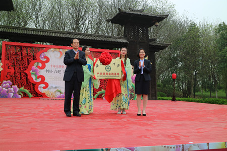 本网讯 4月7日上午,校党委副书记李恩年应邀前往合肥三国遗址公园参加合肥市第九届牡丹节开幕仪式并为我校新增的一处产学研用实践基地揭牌。