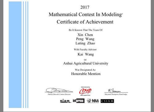 2017年美国(国际)数学建模竞赛共有上万支队伍竞争,包括哈佛大学、麻省理工大学、清华大学、北京大学等国际名校。我校为第一次参赛,共4支队伍,获得了1项二等奖和3项成功参赛奖的成绩。我校首次参加这类国际型理科赛事即能够获得二等奖,充分说明了应用数学系教师过硬的教学水平,也体现了我校学生数学素养和创新能力的提高。(王凯 通讯员:钟晨)