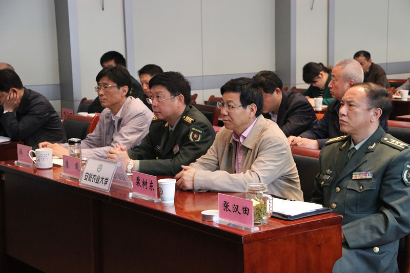 本网讯 4月26日,中央军委国防动员部、教育部共同召开2017年全国大学生征兵工作网络视频会议,我校设立分会场。合肥市警备区司令员朱毅、综治办主任王勇、司令部参谋辛雷、政治部干事孟令生,蜀山区武装部副部长邓世松,合肥市市政府办公厅秘书三室主任郭文军,合肥市市委宣传部、编办、公安局、卫计委、财政局、民政局、人社局、交通局等单位征兵工作负责人,合肥市各县、区人武部主要负责同志,我校纪委书记裴树东、副校长韩军、武装部部长涂德润、各学院副书记以及负责征兵工作的辅导员在我校分会场参加了会议。本次会议的主要任务是深入学习贯彻落实习近平总书记重要讲话精神,总结工作,分析形势,明确任务,全力以赴做好2017年大学生征兵工作。