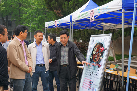 本网讯 4月26日上午,人文社科学院第十六届“人文之月”活动在大礼堂广场开幕。校纪委书记裴树东在校相关部门主要负责人和学院党政领导陪同下莅临开幕式现场。
