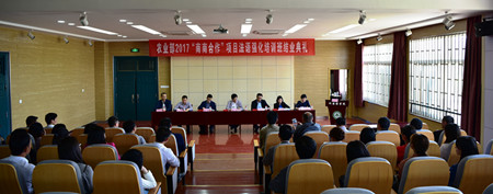 本网讯4月27日下午,农业部2017年“南南合作”项目外派人员法语培训班在我校圆满结束。农业部国际交流服务中心副处长安全,联合国粮农组织驻华代表处项目官员周利瑾,安徽省农委外事外经处处长韦艾平,我校副校长韩军出席结业典礼并讲话。安徽省农委外事外经处、我校国际交流与合作处和外国语学院等单位领导,以及培训班全体教师和学员参加了结业典礼。校国际交流合作处处长姜红主持结业典礼。
