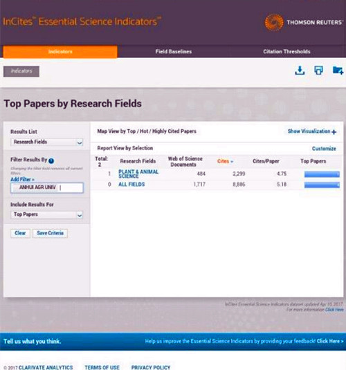 本网讯 据ESI日前公布的最新统计数据显示,我校“植物与动物科学”(Plant&Animal Science)学科首次进入ESI世界排名前1%行列。