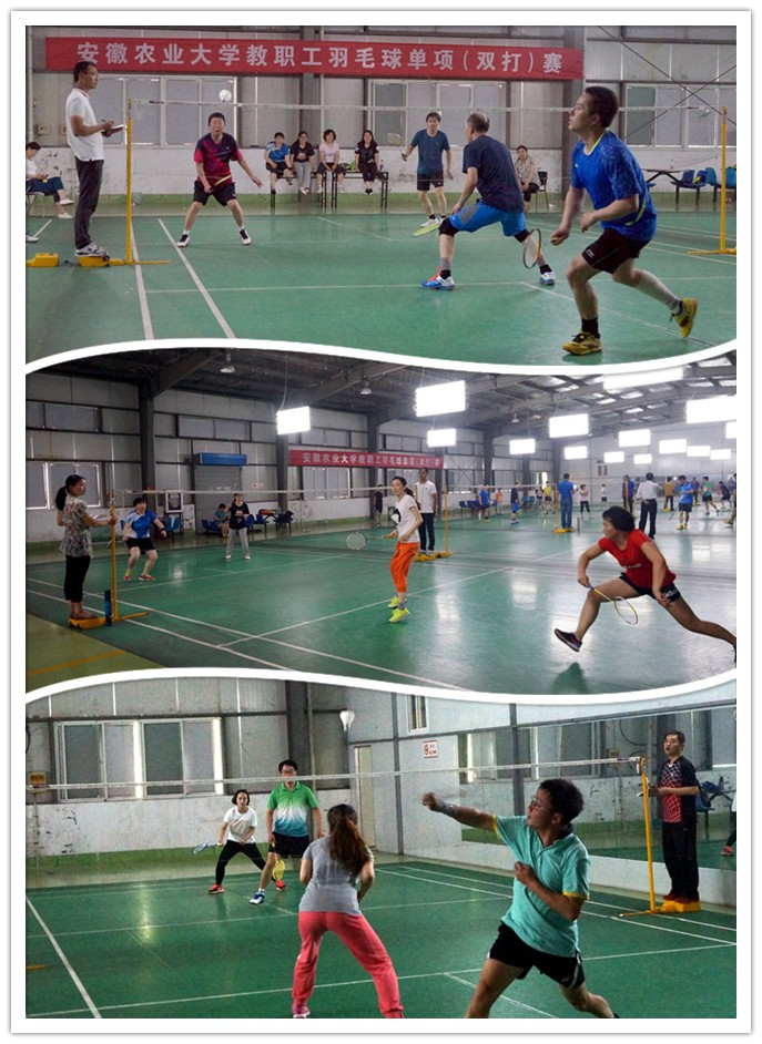 本网讯5月20日,2017年安徽农业大学教职工羽毛球单项(双打)比赛在第三运动场羽毛球馆鸣锣开战。校党委常委、副校长韩军亲临赛场,为运动员加油鼓劲。