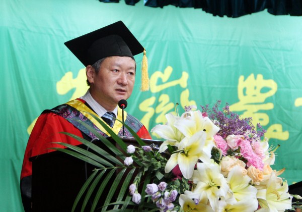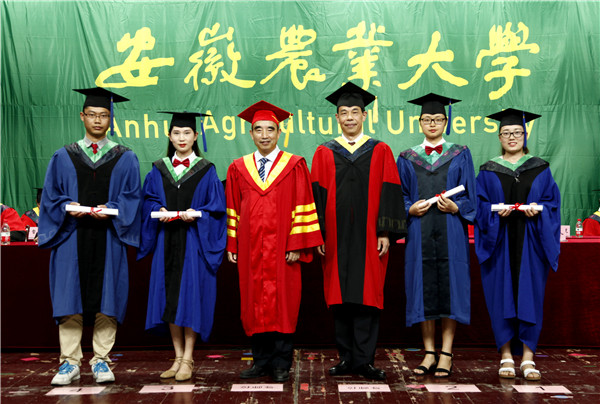 校党委书记江春在致辞中代表学校对大家圆满完成学业表示衷心的祝贺,向为大家成长成才付出辛勤劳动的老师和家长们致以崇高的敬意,向关心和支持学校发展的各位校友和来宾表示诚挚的感谢。他寄语同学们要在理想中前行,在担当中作为。希望大家牢记并继承和发扬母校的“大别山道路”精神,做有理想、有追求、有担当、有作为、有品质、有修养的“六有”青年,让青春之花绽放在祖国最需要的地方,在工作和生活中勇担社会责任,在为实现“中国梦”的伟业中激扬青春、实现抱负、建功立业。要在求实中实践,在创新中奋进。希望大家积极投身改革开放和“三农”事业主战场,练就过硬本领、矢志艰苦奋斗、锤炼高尚品格,在实现“中国梦”的生动实践中放飞青春梦想,在为人民利益的不懈奋斗中书写人生美丽华章。要在包容中成长,在感恩中奉献。希望大家始终保持积极的人生态度、良好的道德品质、健康的生活情趣,永怀感恩之心,正确处理集体和个人、奉献和获取的关系,在奉献中体验人生的快乐,收获幸福的人生。