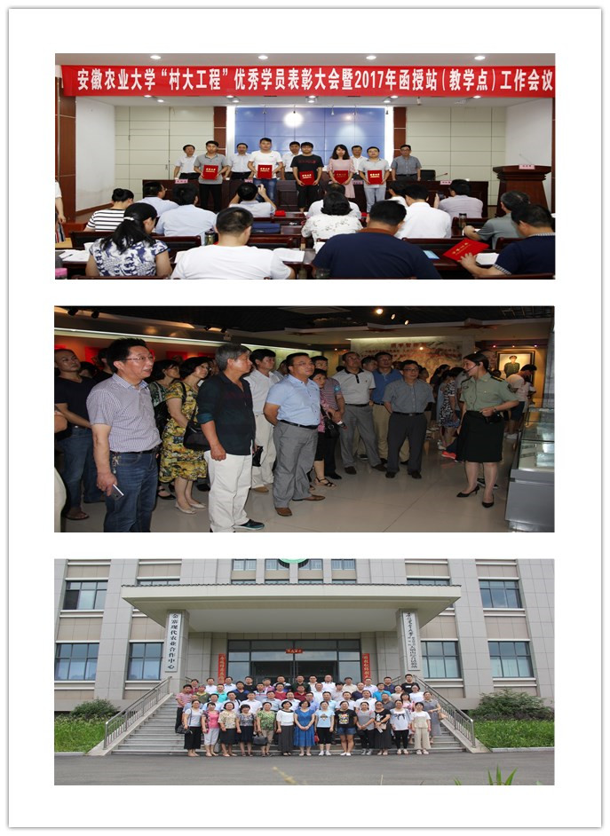 会上,何如海同志简要总结了我校2016年继续教育工作,并对2017年成人高等教育招生、教学改革和信息化建设工作做了进一步落实,传达了《教育部高等学历继续教育专业设置管理办法》(教职成〔2016〕7号)的文件精神。王华君同志宣布了《关于表彰安徽农业大学“一村一名大学生”人才培养工程优秀学员的决定》,优秀学员代表程斌同志做了交流发言。会议期间,继续教育学院结合学历教育实践教学要求和新型职业农民培育模式的示范推广组织会议代表参观考察了我校新农村发展研究院大别山综合试验站和小南京村美丽乡村建设、光伏农业情况,全体与会代表在金寨红军广场接受了一次红色教育。会议达到了统一思想、提振信心、增进交流、开拓思路的效果。(王安源 通讯员:缪亮)