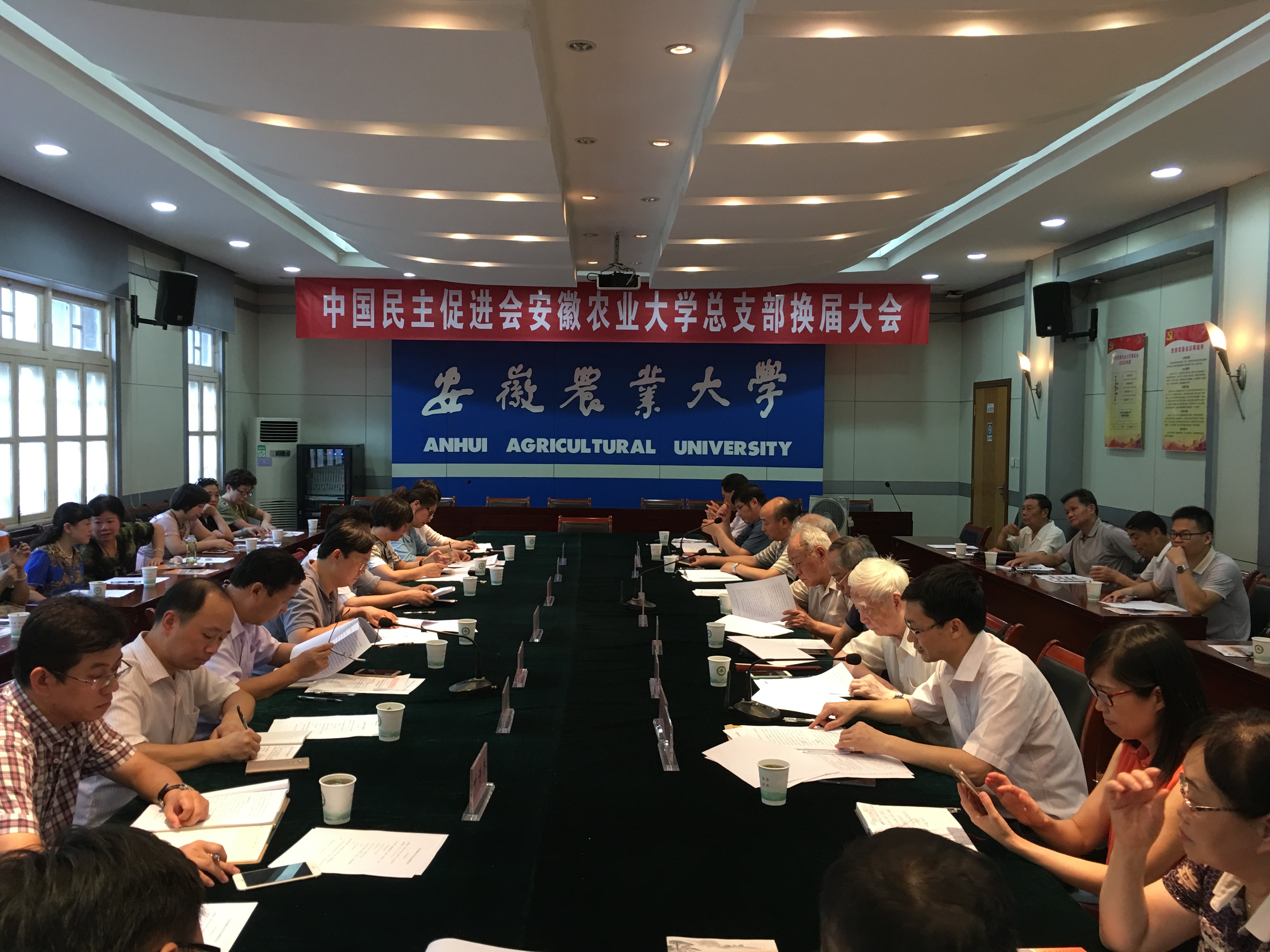 周可金代表新一届总支部委员会发言,表示将在民进安徽省委和校党委领导下,坚持民进“以党为师、立会为公、参政为民”的光荣传统,团结带领广大会员加强思想建设、组织建设、作风建设和制度建设,锐意进取、扎实工作,为我省农业的转型发展和建设五大发展美好安徽贡献力量。