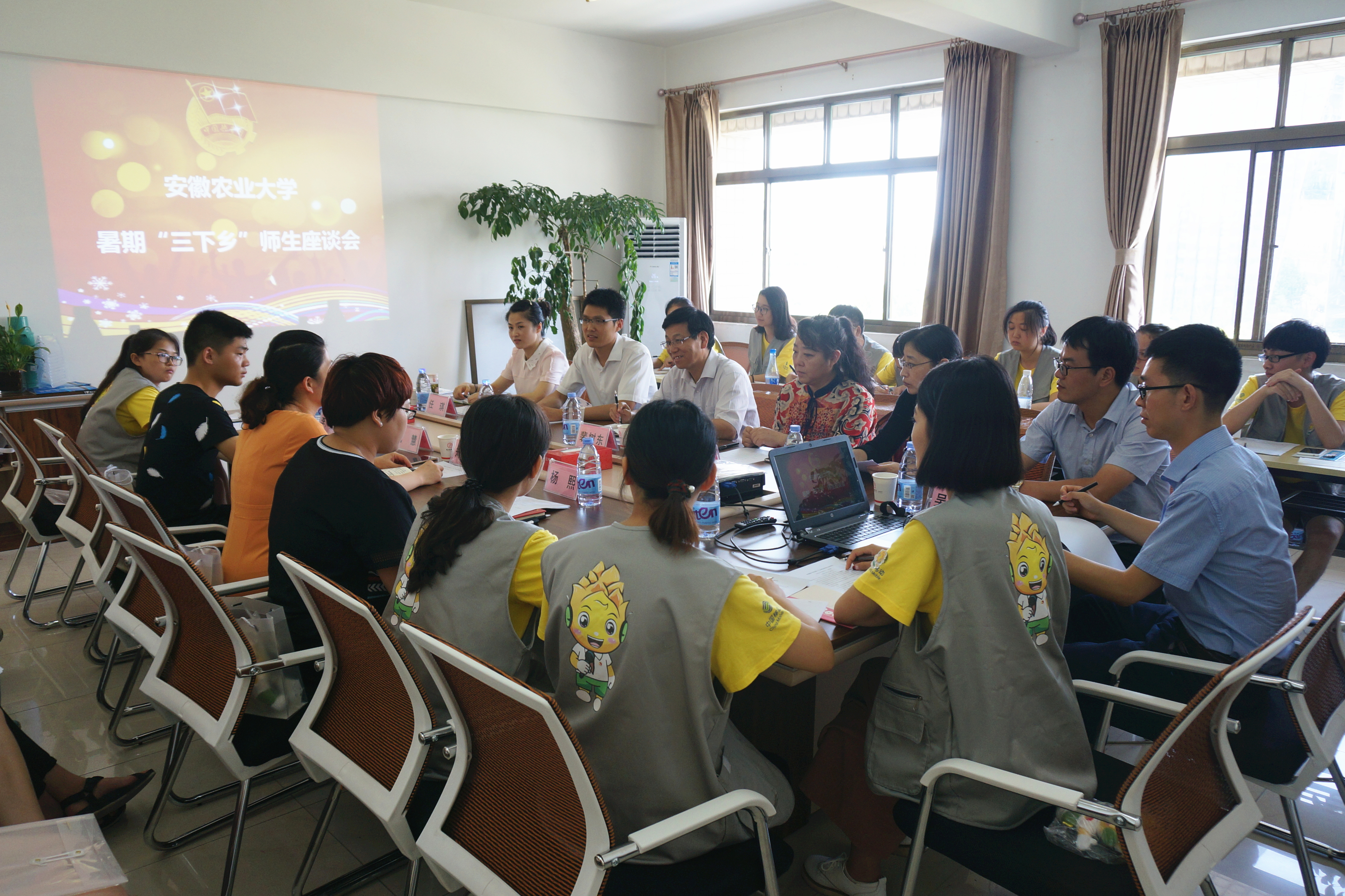 下午,裴树东一行来到团六安市委,慰问正在开展“三下乡”暑期社会实践活动的安农青年传媒中心团队并召开座谈会。“感谢‘三下乡’让我有机会来到这里,与团市委共同交流新媒体工作,相互学习、共同进步”、“今天上午参加了团市委组织的新媒体线下志愿服务活动,让我感受到了新媒体对于广大市民的影响力,也坚定了我参与做好我校共青团新媒体工作的决心”、“参与了团市委的新媒体运营工作,感受到了相对校园媒体外的大众新媒体的工作强度和难度,也激发了我们的创作灵感和工作思路”,团队成员结合在安农青年传媒中心的工作经历和“三下乡”的活动内容做了交流汇报。裴树东首先感谢团六安市委对“三下乡”活动的支持、指导和帮助,并充分肯定了同学们的实践成果,尤其对安青传媒中心建好、用好、管好新媒体,协助做好大学生思想教育和成长成才服务工作给予了高度认可。同时,他希望团队的同学们能够团结一致,深入实践,做到学以致用,不断提升共青团新媒体的工作水平;珍惜这次难得的机会,在实践工作中要做到勤于思考,善于总结,要有所感、有所悟,真正做到在实践中长知识、增才干,确保圆满完成本次“三下乡”活动。