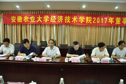 本网讯7月19日下午,安徽农业大学经济技术学院在高教基地校区第二会议室召开2017年第一次董事会。安徽农业大学党委书记江春,校长程备久,校纪委书记裴树东,副校长、经济技术学院董事长马传喜,经济技术学院执行董事长王叙平及其他董事会成员和相关单位负责同志参加了会议。会议由马传喜主持。