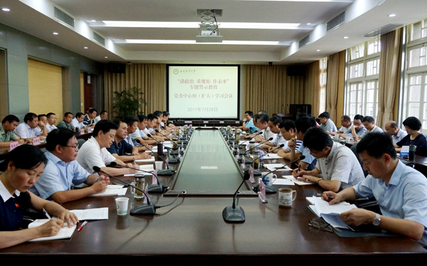 会上,江春传达了习近平总书记在省部级主要领导干部“学习习近平总书记重要讲话精神,迎接党的十九大”专题研讨班开班式上的重要讲话精神,并就进一步做好“重规矩,我们怎么做”专题讨论指出,要把牢政治方向,深刻认识严守政治纪律政治规矩的重要性。严守政治纪律政治规矩是落实全面从严治党的根本要求,是做合格共产党员的行为规范,是学校领导干部自身建设发展的现实需要。要把专题警示教育作为当前一项重要的政治任务来抓,作为推进“两学一做”学习教育常态化制度化和“讲重作”专题教育的重要内容来对待,践行忠诚、干净、担当,努力形成想作为、敢作为、善作为的良好校园政治生态。要认真学习懂规矩,让纪律规矩入脑入心入行。做到坚决遵守党章党规党纪,坚决加强和规范党内政治生活,坚决落实党内监督责任。要强化责任担当,以实际行动严守政治纪律政治规矩。切实增强按纪律规矩办事的强烈意识,切实做到人人重规矩人人按制度办事,切实强化监督执纪问责力度,切实通过严守政治纪律政治规矩来推动学校事业发展。江春强调,“重规矩”必须从大处着眼,小处着手,学校各级领导干部必须不断提高对加强党的政治纪律和政治规矩重要性的认识,真正使守纪律讲规矩内化于心、外化于行。