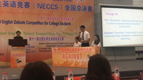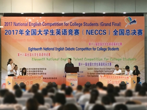 本网讯 近日,2017年全国大学生英语竞赛(NECCS)全国总决赛在哈尔滨理工大学落下帷幕,我校学子在比赛中取得了不俗成绩。本次比赛由高等学校大学外语教学指导委员会、高等学校大学外语教学研究会主办,黑龙江省大学外语教学专业委员会协办,哈尔滨理工大学等机构承办,共有来自全国230余所高校的近400名选手参加,分别进行了英语演讲比赛、英语辩论比赛、英语风采大赛三项比赛的角逐。