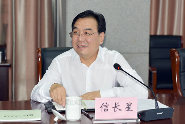 在听取汇报后,信长星对我校改革发展取得的成绩给予充分肯定,他指出,安徽农业大学历史悠久,绿树成荫,环境优美,学科优势明显,多年来培养了大批农业、林业人才,为服务“三农”和经济社会发展做出了重要贡献。