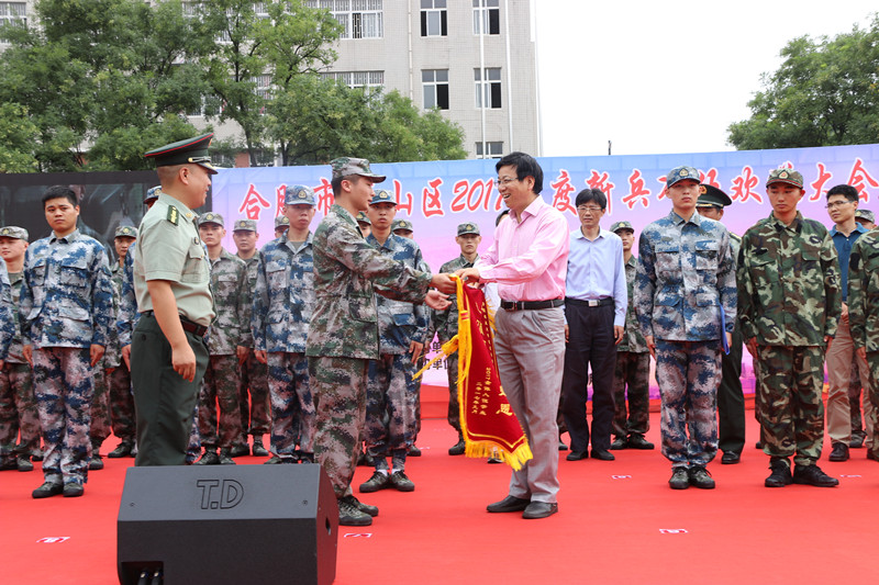 在欢送仪式上,入伍同学向母校赠送锦旗,表示入伍后会努力成为一名合格的战士,为农大争光,在部队早日建功立业。(武装部)