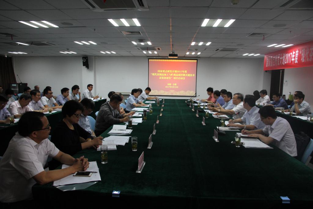 本网讯 9月12日-14日,科技部中国农村技术开发中心在我校组织召开了“现代茶制品加工与贮藏品质控制关键技术及装备研发”项目启动会,项目19个参加单位的共60余名代表人参加了会议。本次会议是国家重点研发计划“现代食品加工及粮食收储运技术与装备”重点专项2017年度立项启动的14个项目中召开的第一个启动会,安徽省科技厅厅长宛晓春、我校校长程备久出席会议并致辞,科技部农村中心星火与信息处于双民处长、戴炳业副处长和流动项目专员杨文建副教授、省科技厅农村科技处韩立生副处长出席会议。