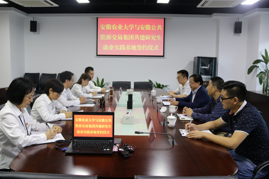 在与安徽公共资源交易集团有限公司的揭牌仪式上,副总经理汪浩介绍了公司基本概况,并对我校已在公司工作的五名研究生给予了高度评价。祁克宗就我校学位与研究生教育基本情况及近年来研究生就业创业情况作了介绍。会后,双方签订了“研究生专业实践基地建设协议书”。