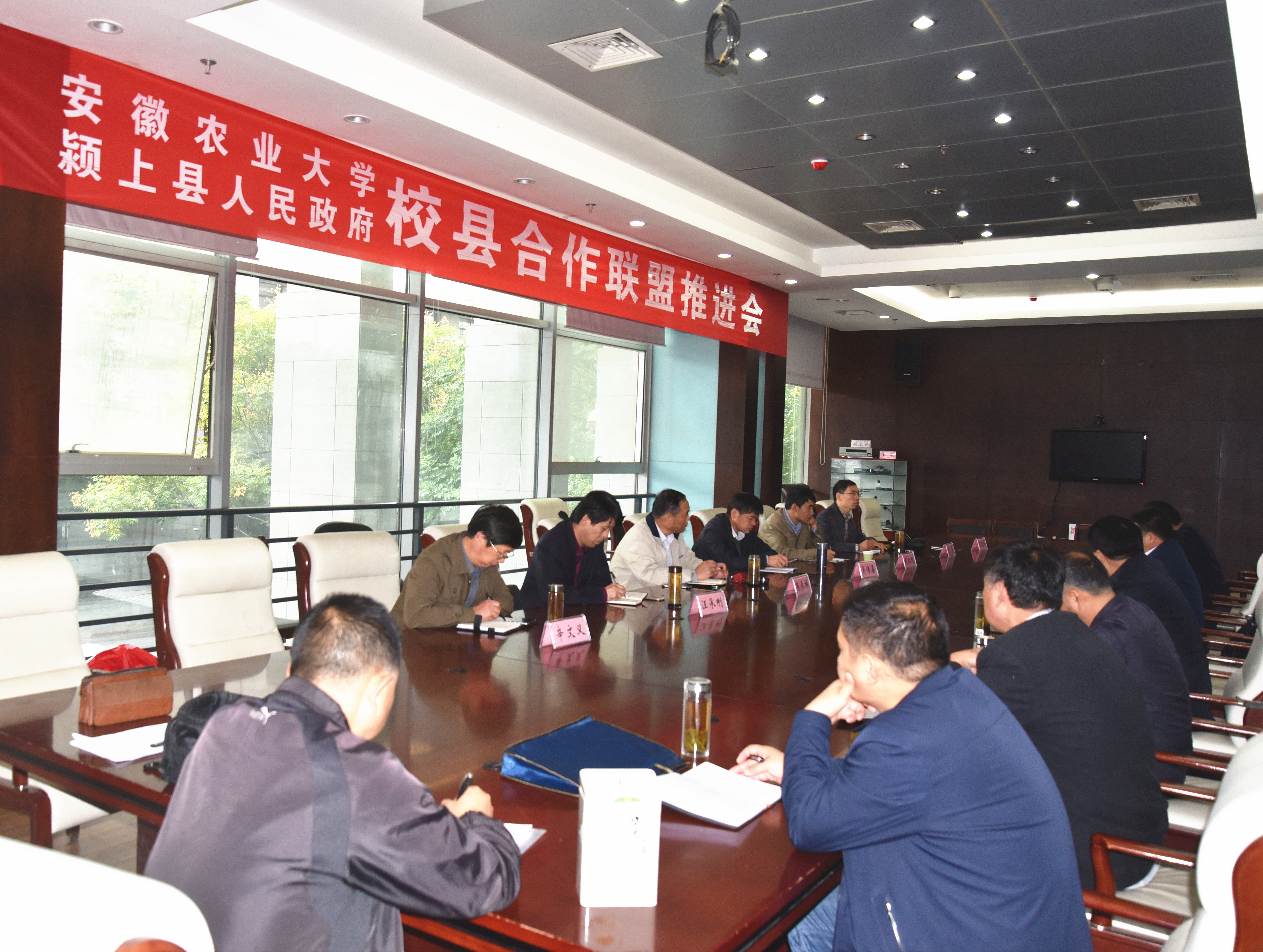 本网讯10月17日下午,安徽农业大学与颍上县人民政府联合召开校县合作联盟推进会。副校长马传喜、颍上县县委副书记陈锐出席会议,会议由颍上县县委副书记陈锐主持。