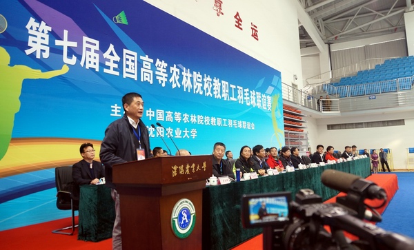 本网讯10月12—14日,第七届全国农林院校教职工羽毛球联谊赛在沈阳农业大学丰禾体育馆举行。来自中国农业大学、华南农业大学、华中农业大学、南京农业大学和包括东道主沈阳农业大学在内的18支队伍、300余名运动员参加了此次活动。开幕式由沈阳农业大学副校长王继成同志主持,沈阳农业大学校长刘广林同志致欢迎词,联谊会理事长安徽农业大学原党委书记宛晓春同志宣布联谊赛开幕。
