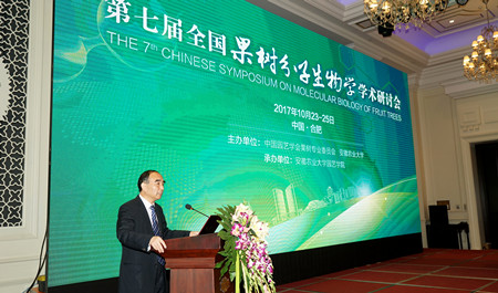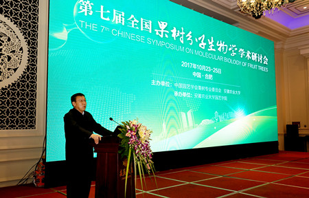 本网讯 10月23-25日,第七届全国果树分子生物学学术研讨会在安徽饭店隆重召开。本次会议由中国园艺学会果树专业委员会和安徽农业大学联合主办,安徽农业大学园艺学院承办。来自中国农业大学、浙江大学、上海交通大学、华中农业大学、南京农业大学、西北农林科技大学、华南农业大学、中国农科院等60余所高校和科研院所的500余名专家学者和研究生出席了本次会议。