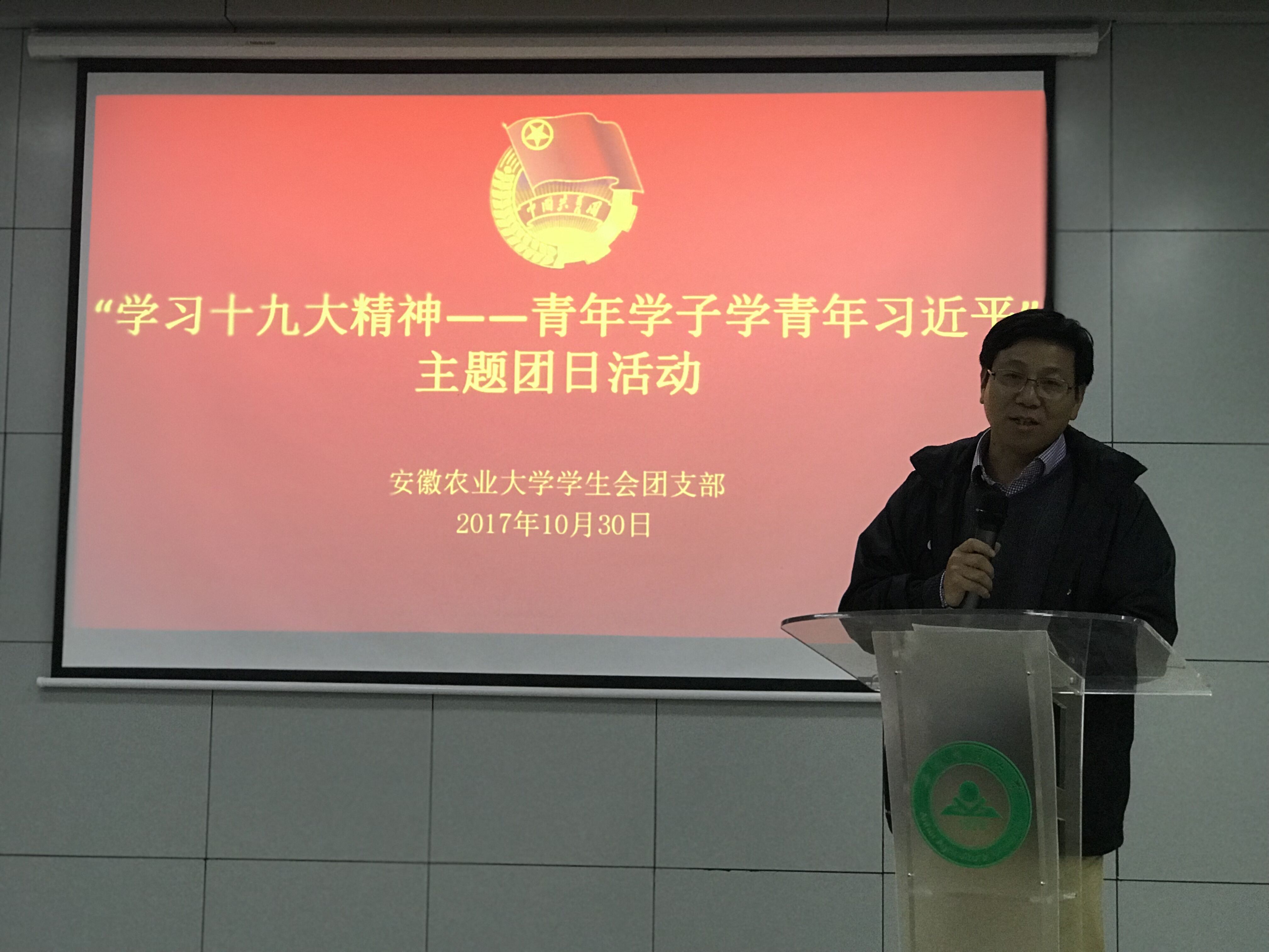 裴树东对本次活动给予充分肯定,并指出本次主题团日活动是我校共青团组织积极响应校党委号召,全面深入学习、贯彻落实十九大精神的生动实践,掀起了安农学子学习十九大精神的高潮,更是学校坚持立德树人、加强大学生思想政治工作的有效载体。他结合自身的十九大精神学习体会,给同学们提出了殷切的期望,希望同学们不忘初心,牢记使命,坚定信念跟党走;勤奋学习,勇于实践,练就服务“三农”的过硬本领;艰苦奋斗,脚踏实地,青春建功新时代;服务同学,实干担当,引领广大学子成长成才,在实现中华民族伟大复兴梦的生动实践中放飞青春梦想、贡献青春力量。(胡翔 通讯员:吕莎莎)
