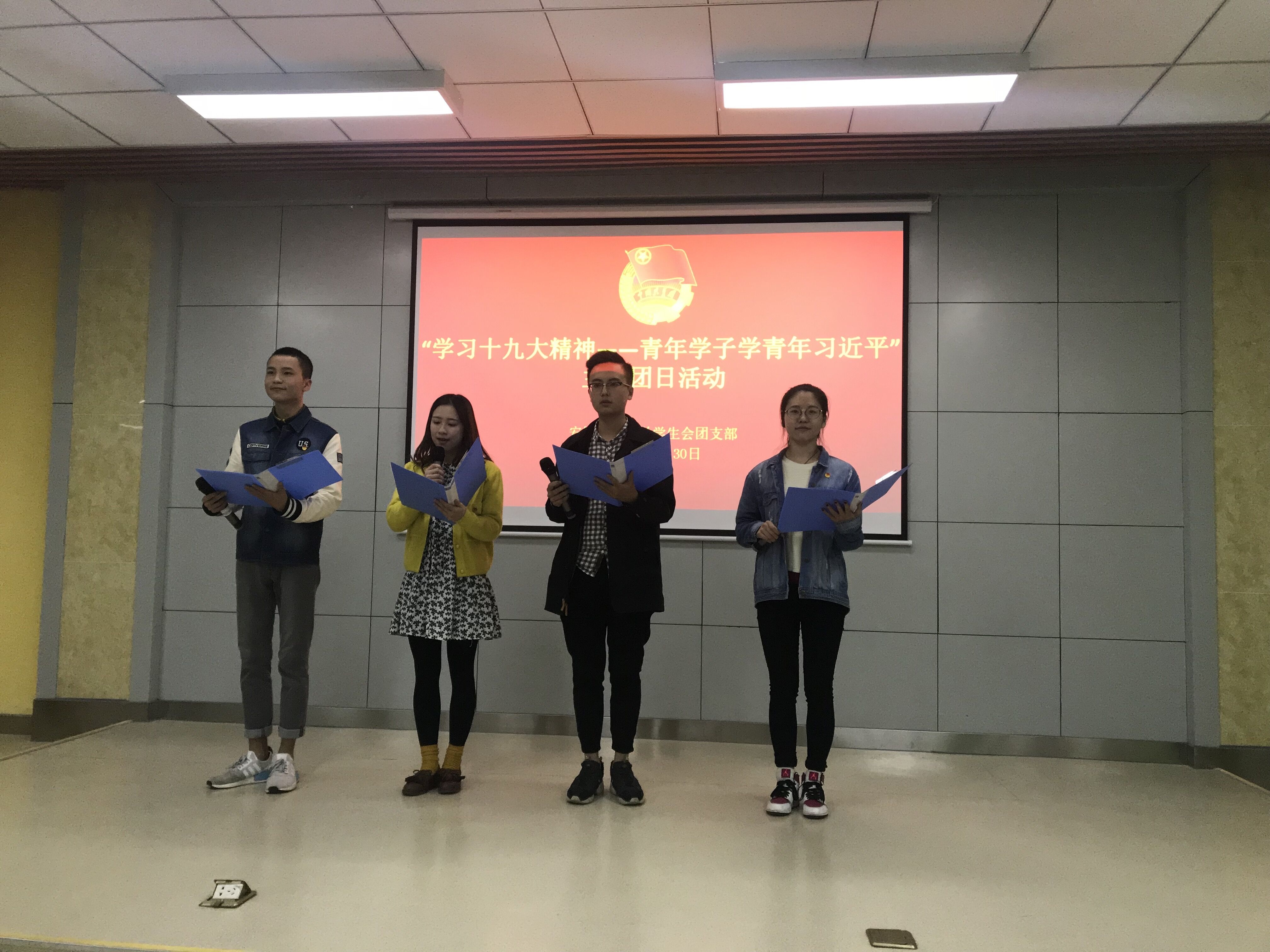 本网讯 “《习近平的七年知青岁月》读书报告会、‘为新时代打call’十九大报告诵读会、学习十九大精神青春分享会”,丰富的活动内容,新颖的活动形式,让校学生会团支部10月30日晚在大学生创客空间路演大厅举办的“学习十九大精神,青年学子学青年习近平”主题团日活动显得尤为出彩。校纪委书记裴树东,校团委书记张健、副书记任琪应邀参加了活动。