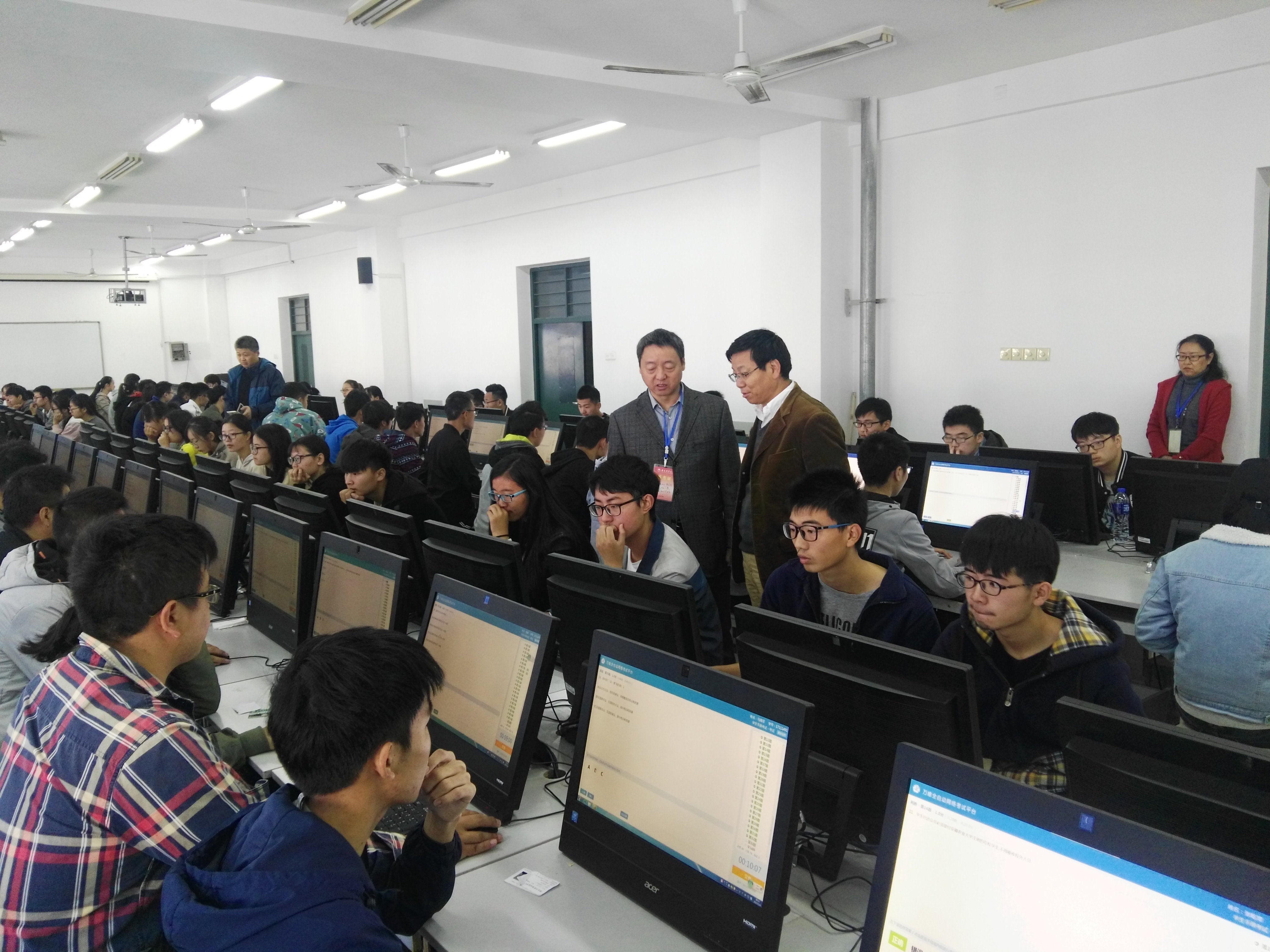 本网讯 11月4日-5日,我校2017年版《学生手册》无纸化考试在信息与计算机学院机房举行,4842名新生和部分2016级学生参加了考试。校党委常委、纪委书记裴树东到现场指导和巡视了考试情况。