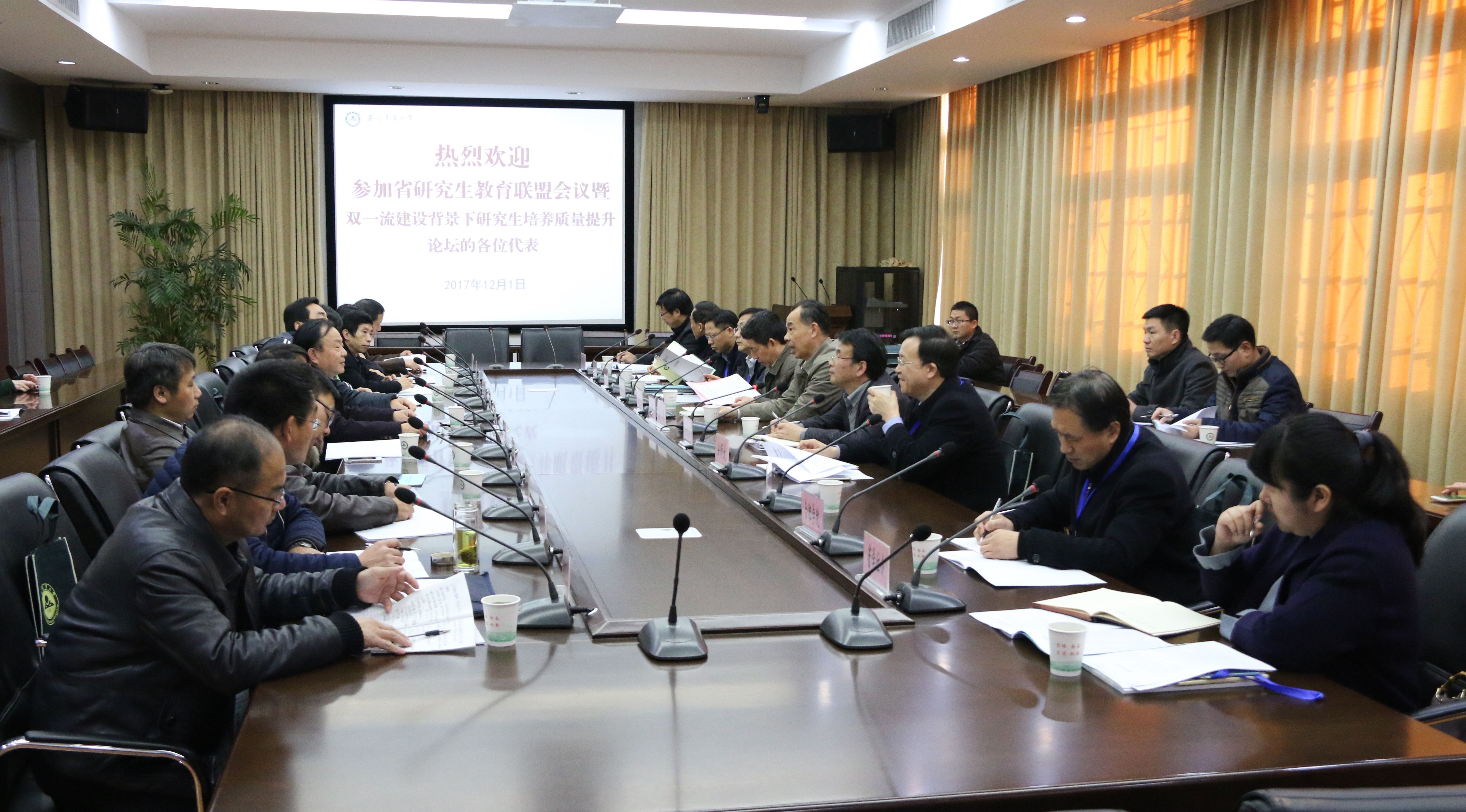 本网讯 依照《省研究生教育联盟章程》规定,为加强联盟高校之间的合作和交流,促进相互学习和借鉴经验,12月1-2日,省研究生教育联盟会议暨“双一流建设背景下研究生培养质量提升”论坛在我校召开,省学位办正处级调研员许绪荣出席会议,校党政领导高度重视,精心组织,副校长夏涛出席并主持各阶段会议,中国科学技术大学、合肥工业大学、安徽大学等20家研究生联盟单位部门负责人及相关人员参加会议。