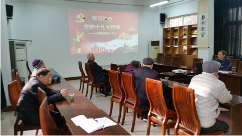本网讯12月7日下午,离退休工作处党总支举办离退休老同志大讲堂,组织老同志们在处会议室,认真听取总支书记张克永同志学习贯彻党的十九大精神宣讲报告会。