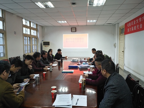 本网讯12月22日下午,总务管理处在学校第五会议室组织召开了2017年度校园物业服务验收工作会议。校审计处、国资处、总务管理处、工会、大学生公寓管理中心、图书馆、生物技术中心等部门代表参加了会议。会议由校总务管理处处长、基建办公室主任丁金锁同志主持。