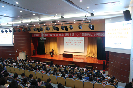 随后,我校与湖州市人力资源和社会保障局签署了“校地人才智力项目战略合作协议书”。湖州市三家优质企业还在现场做了宣讲推介。