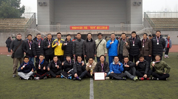 本网讯 12月30日上午,安徽省中片高校(附院)“贺岁杯”教职工足球比赛在中国科学技术大学东校区落下帷幕,我校教职工足球队在决赛中点球惜败安徽医科大学教职工足球队,荣获亚军,并获优秀组织奖。