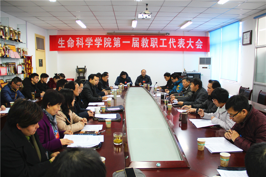 本网讯 1月14日上午,生命科学学院第一届教职工代表大会在学院会议室成功召开。副校长马传喜到会致辞并指导工作,校工会主席张久辉应邀出席大会,学院教代会代表、列席代表参加了会议。