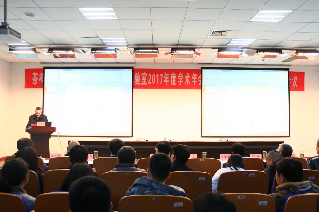 本网讯1月20-21日,我校茶树生物学与资源利用国家重点实验室“第一届学术委员会第三次会议暨2017年度学术年会”在生物科技楼441召开。实验室学术委员会主任委员陈宗懋院士(中国农业科学院茶叶研究所),副主任委员邓秀新院士(华中农业大学)、李家洋院士(中国农业科学院),委员韩斌院士(中国科学院国家基因研究中心)、杨晓光研究员(中国疾病预防控制中心)、刘仲华教授(湖南农业大学)、屠鹏飞教授(北京大学)、梁月荣教授(浙江大学)、向成斌教授(中国科学技术大学)、尹佟明教授(南京林业大学)、刘永胜教授(安徽农业大学)和宛晓春教授(安徽农业大学),安徽省科技厅基础研究与科技奖励处副处长王海风、安徽农业大学党委书记江春应邀出席。学术委员会开幕式由我校茶与食品科技学院院长张正竹教授主持。