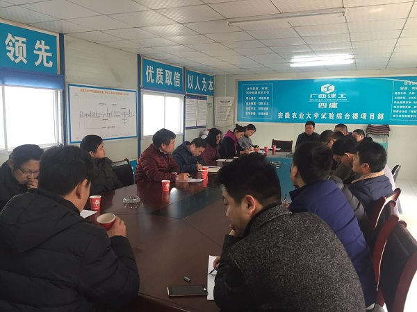 本网讯 为确保实验综合楼2018年暑假期间能够投入使用,3月5日上午,总务处(基建办)召开了实验综合楼建设进度推进会,对实验综合楼后续施工任务进行梳理、协调、部署。甲方代表、监理单位人员、各施工单位人员,国资处、审计处相关人员参加了会议,会议由总务处处长丁金锁同志主持。