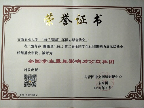 本网讯近日,“燃青春 聚能量”2017年全国大中专学生社团影响力评选活动结果公布,我校学生社团联合会(以下简称“社联”)获“全国学生最具影响力社团联合会”荣誉称号,民乐团获“全国学生最具影响力文艺社团”荣誉称号、绿色家园环保志愿者协会(以下简称“绿家”)获“全国学生最具影响力公益社团”荣誉称号。