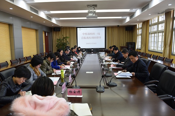 本网讯3月10日,中组部组织一局二处处长李术峰一行3人在省委组织部组织指导处处长杨志斌、省委教育工委组干处处长程宗林等陪同下来我校调研党建工作。校党委书记江春,校办公室、组织部、宣传部、林学与园林学院、茶与食品科技学院等单位负责同志,部分教工党支部、学生党支部书记代表参加了座谈会。
