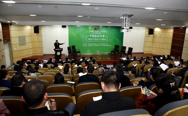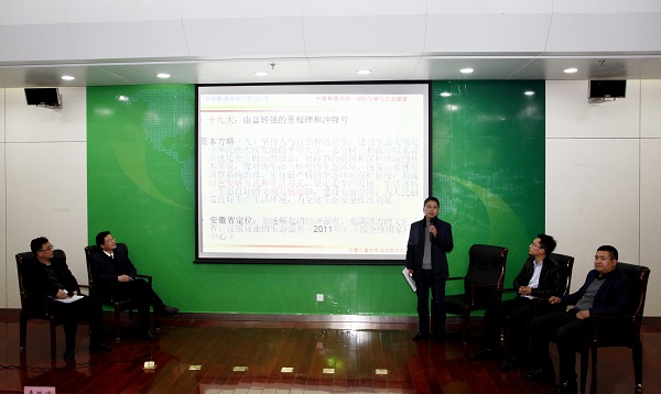 本网讯 3月23日,由安徽省中国特色社会主义理论体系研究中心主办,安徽农业大学中国特色社会主义理论体系研究基地承办的“新思想·新青年”学习沙龙第二期研讨活动在我校成功举办。本次沙龙以“宁静和谐美丽:绿色发展与生态强省”为主题。团省委副书记李跃波、省委宣传部理论处处长唐国富、《安徽日报》理论部主任邹宝元、中安在线副主编周晓留等出席本次沙龙,校党委常委、副校长蒋家平会前会见了上述人员。我校办公室、宣传部、科技处、人文社会科学学院、马克思主义学院负责人,来自全省各高校从事马克思主义理论研究的专家教授、青年学者以及我校部分教师、研究生150人参加了本次沙龙。沙龙活动由我校人文社会科学学院副教授张伟博士主持。