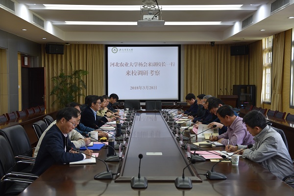本网讯3月28日,校长程备久、副校长姚佐文热情接待了来校考察交流的河北农业大学副校长杨会来一行。会议由姚佐文主持。