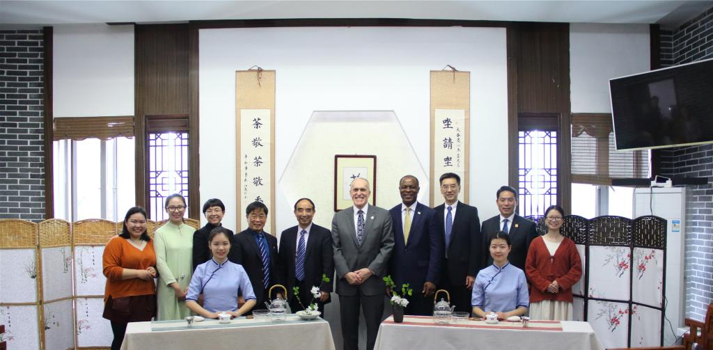 会后,程备久及国际交流合作处负责人陪同威尔考克斯一行参观了我校生物科技楼、图书馆,并观赏了我校学生的茶艺表演,体验了丰富的茶文化。