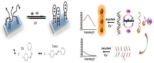 该论文构建了一种基于核酸适配体的电化学传感器,该传感器首次将靶标识别元件、信号转导元件和再生元件集成在一条DNA链上。该传感器对于靶标ATP分子具有良好的识别功能,能够在复杂生物样品中选择性检测ATP分子,并且可以通过紫外光照一步操作实现再生。