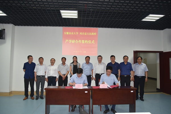 本网讯 5月14日,我校与凤台县人民政府在安徽农业大学签订战略合作协议。校党委书记江春,凤台县政府县长袁祖怀、县委常委、副县长操海群、副县长李萍等领导出席签约仪式。签约仪式由副校长姚佐文主持。