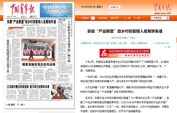 本网讯今日出版的《中国青年报》头版头条,以“安徽‘产业联盟’助乡村创客驶入发展快车道”为题,报道了我校 “产业联盟”专家先进事迹。
