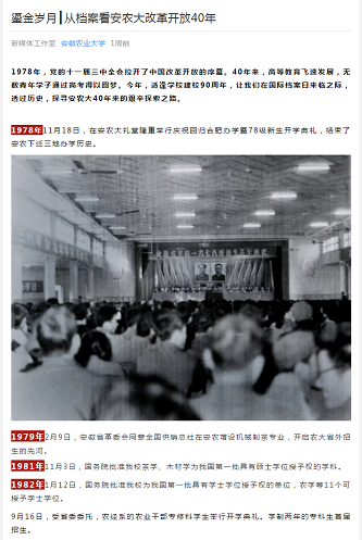 6月8日,学校官方微信平台推出一期“从档案看安农大改革开放40年”,图文并茂地介绍了学校改革开放以来40年的求实创新之路。