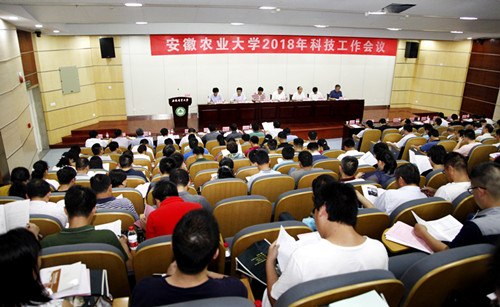 本网讯7月2日下午,我校2018年科技工作会议在图书馆第二学术报告厅召开,校党委书记江春,校长程备久,纪委书记裴树东,副校长马传喜、姚佐文、蒋家平、韩军出席了会议。相关职能部门负责人,校学术委员会委员,各学院党政主要负责人、分管科研工作副院长、科研秘书,省部级以上重点实验室平台负责人,学校引进的高层次人才,以及教师代表近200人参加了会议。会议由姚佐文主持。