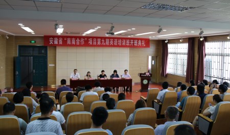 本网讯7月8日上午,由省农委主办、我校承办的安徽省“南南合作”项目第九期英语培训班开班典礼在外国语学院举行。省农委外事外经处调研员闫玉玲,校国际交流合作处处长姜红,外国语学院党政领导姚莉、孙志农、黄庆华及培训班全体授课教师、工作人员和学员参加仪式。外国语学院党委书记姚莉主持仪式。姜红代表学校向出席开班仪式的领导和全体学员表示热烈欢迎,介绍了我校在服务“三农”、国际化办学等方面所做的工作和取得的主要成绩。她指出,一直以来我校高度重视对外交流与合作,将援外农业技术培训作为加强对外合作的重要平台。今年学校将认真总结以往各期培训班的成功经验,周密筹划,以精干的教学、管理服务和认真负责的态度,保质保量地完成本期培训工作。