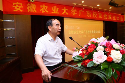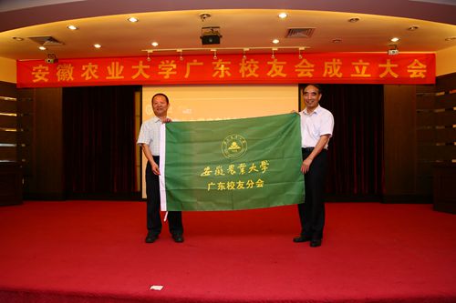 会上,陈征义向大会报告了广东校友会的筹备情况。王华丽宣读了《关于同意成立安徽农业大学广东校友会的批复》。大会审议通过了《安徽农业大学广东校友会章程》,78级林学专业校友王建华、77级茶叶专业校友叶庆生、78级机茶专业校友郑沐坤当选为名誉会长,85级畜牧兽医专业校友、广东立达尔生物科技股份有限公司董事长陶正国当选为首届广东校友会理事长。选举通过后,程备久为广东校友会授旗。