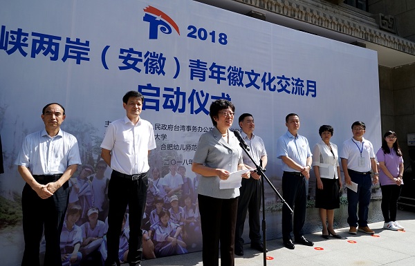 本网讯 7月11日上午,海峡两岸(安徽)青年徽文化交流月活动启动仪式在我校举行。省委常委、统战部长刘莉、省政协副主席、省教育厅厅长李和平、校长程备久、台湾师范大学带队教师林政宏出席启动仪式并致辞。团省委书记孔涛、安徽大学副校长程雁雷、合肥幼师高等专科学校校长方东玲、省台办副主任汪泗淇、副校长姚佐文等省直有关单位负责同志以及皖台两地师生代表、志愿者代表约200余人参加启动仪式。省台办主任刘泉主持仪式。