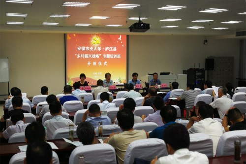 本网讯 7月11日下午,安徽农业大学—庐江县乡村振兴战略专题培训班开班仪式在省委党校举行。来自庐江县各镇、县直有关单位的70名领导干部参加开班仪式。庐江县人民政府副县长黄正来、县委组织部副部长孙功亮、我校继续教育学院院长蔡德军等出席开班仪式,外国语学院党委书记姚莉主持开班式。