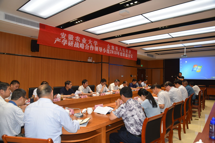 本网讯7月18日下午,我校与金寨县人民政府产学研战略合作领导小组2018年度联席会议在金寨召开。校党委书记江春、校长程备久、副校长姚佐文,六安市委副书记、金寨县委书记潘东旭出席会议。会议由金寨县委常委汪洪涛主持。