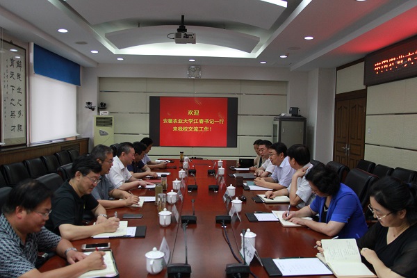 会上,江春介绍了我校的办学历史、办学规模、人才培养、学科建设等情况,并介绍了此次考察交流的目的。指出中国农业大学是全国农业高校的排头兵,在学科建设、科学研究、人才培养和社会服务等方面积淀了许多宝贵经验,值得我们全方位地学习和借鉴。希望中国农业大学关心、支持和帮助安徽农业大学的发展,深入开展两校合作。