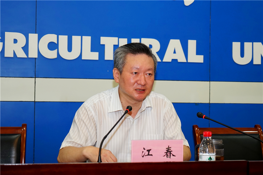 江春对新教师的加入表示欢迎,他在题为《践行立德树人做新时代“四有”好老师》的专题报告中就做好老师要铸理想之魂、修立德之身、练授业之能三个方面与新进教师探讨“怎样成为一名新时代‘四有’好老师”。他指出,大学的立身之本是立德树人,老师作为立德树人的主体,是文化的传播者,是学生的引路人,责任重大,使命光荣。他强调,做好老师要铸理想之魂,牢记育人使命、筑牢信念之基,深刻认识教师的崇高使命,做人类灵魂的塑造者;要修立德之身,树立正确价值取向、继承优良传统美德、践行高尚师德师风,把教书育人和自我修养结合起来,做到以德立身、以德立学、以德施教;要练授业之能,保持谦虚严谨的治学态度,弘扬百折不挠的执着精神和敢为人先的创新精神,秉持求真务实的安农精神,不断提升教学能力、科研能力以及社会服务能力,练就一身过硬的本领,在推进学校事业发展的征程上实现自身的人生价值。最后,他要求并希望新进老师做到:坚守底线,坚持学术自由和学术规范相统一,追求学术自由,恪守学术道德;履职尽责,坚持言传身教和教书育人相统一,既做经师、又做人师,成为学生真心喜欢的学业导师和人生导师;内外兼修,坚持潜心问道与关注社会相统一,将社会责任放在首位,实现课本知识与实践知识有效的结合;至诚报国,坚持心有大我和服务国家相统一,始终牢记党和国家的利益、人民群众和广大学生的利益,牺牲小我成就大我,甘于奉献、服务社会,努力使自己成长为有理想信念、有道德情操、有扎实学识、有仁爱之心的“四有”好老师,把安农作为干事创业和实现人生价值的沃土。