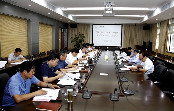 本网讯8月17日上午,校党委班子在第三会议室召开“讲忠诚、严纪律、立政德”专题警示教育民主生活会,深入学习贯彻习近平新时代中国特色社会主义思想和习近平总书记关于“立政德”的重要论述,对照“三严三实”原则,对照党章党规党纪,以鲁炜等案件为反面教材,联系“陈杨周”等案件及我校查处的违规违纪问题,结合省委开展“三查三问”的部署要求,紧密联系思想、工作、生活和作风实际,认真查找突出问题,严肃开展批评与自我批评,着力强化忠诚意识、严守纪律规矩、树立良好政德,努力打造政治过硬本领高强的领导班子。